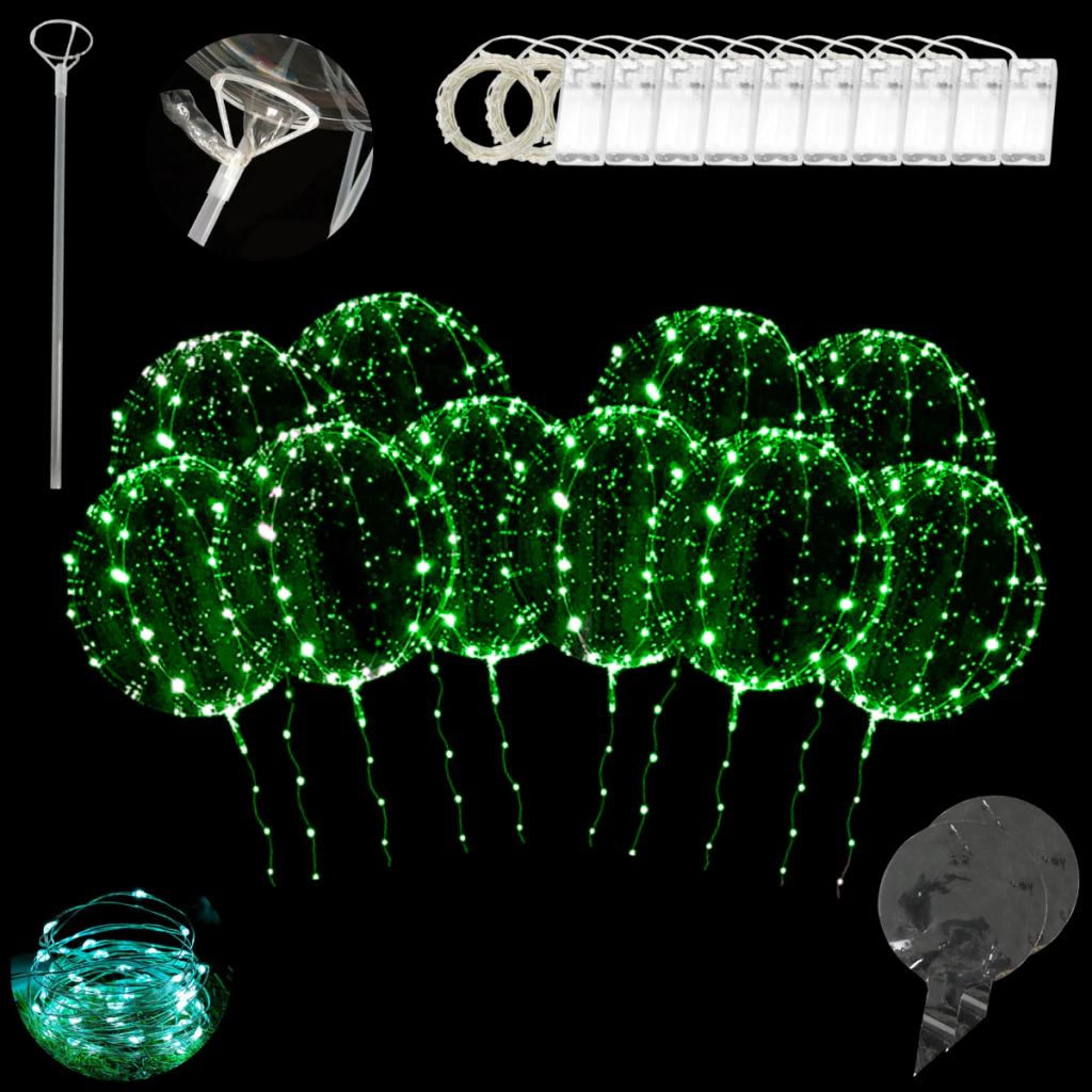 10 globos burbujas cristal led luminoso + palitos porta globos.