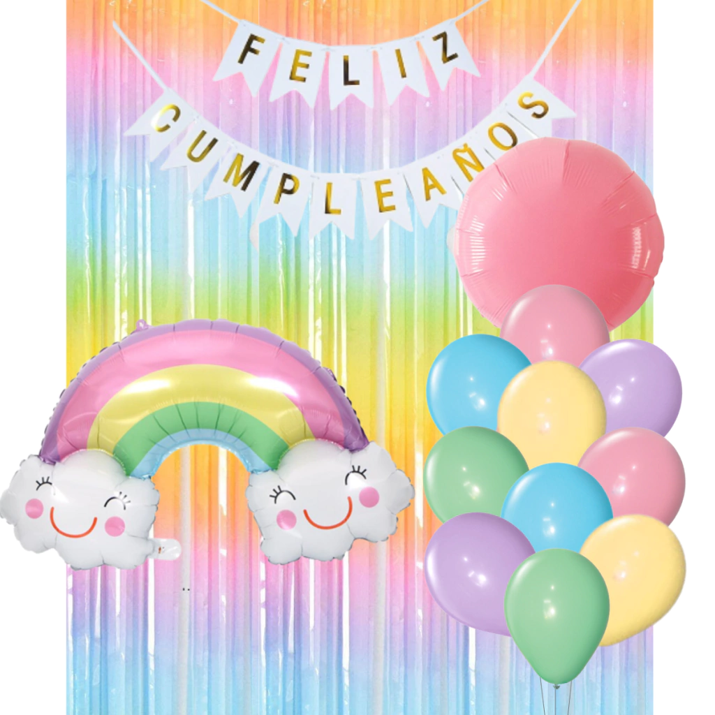 COMBO FIESTA CUMPLEAÑOS ARCOIRIS NUBE