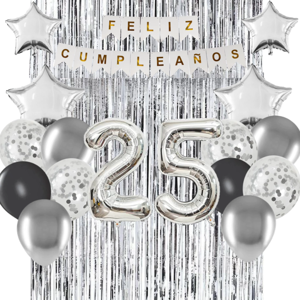 COMBO CUMPLEAÑOS GLOBOS TEMATICA PLATA