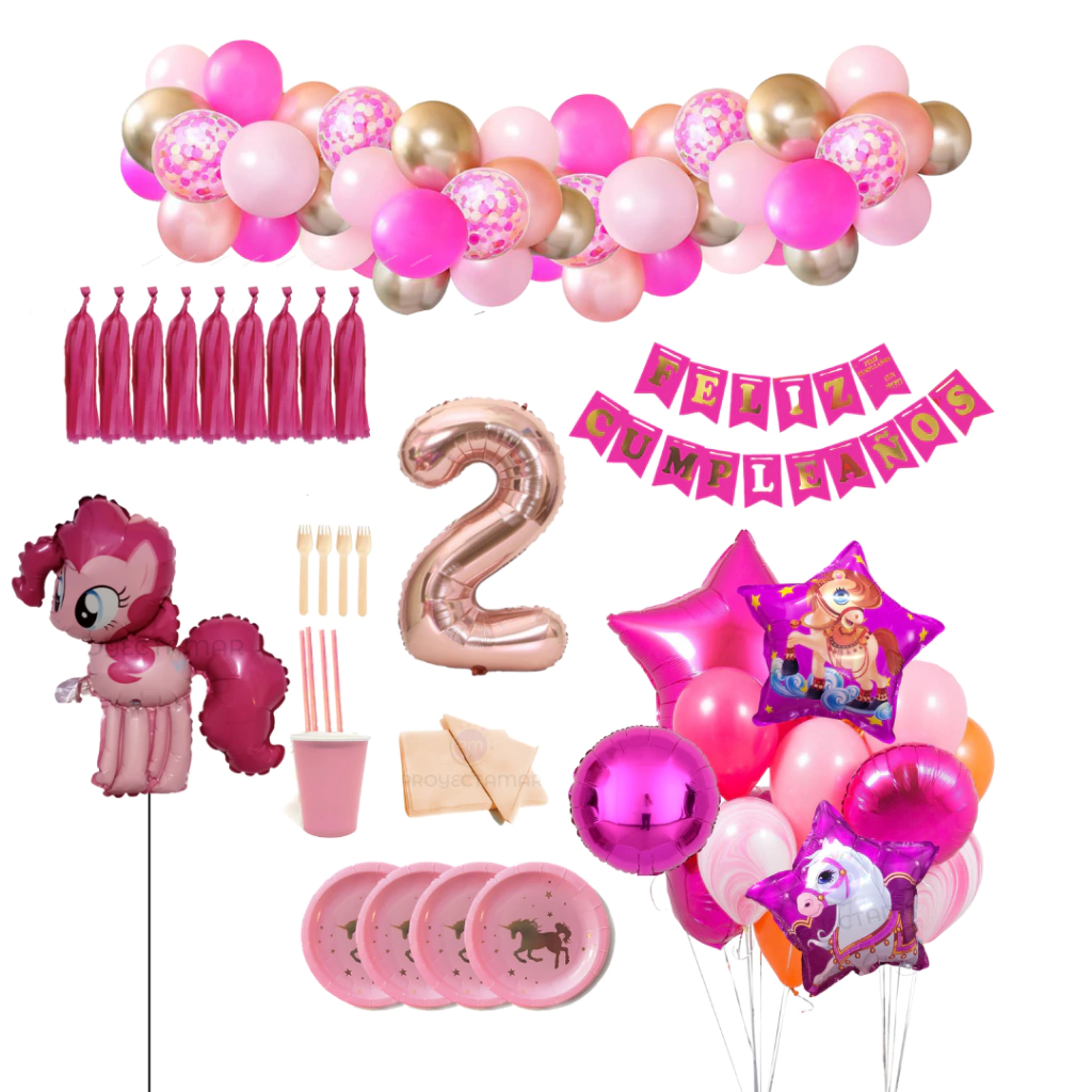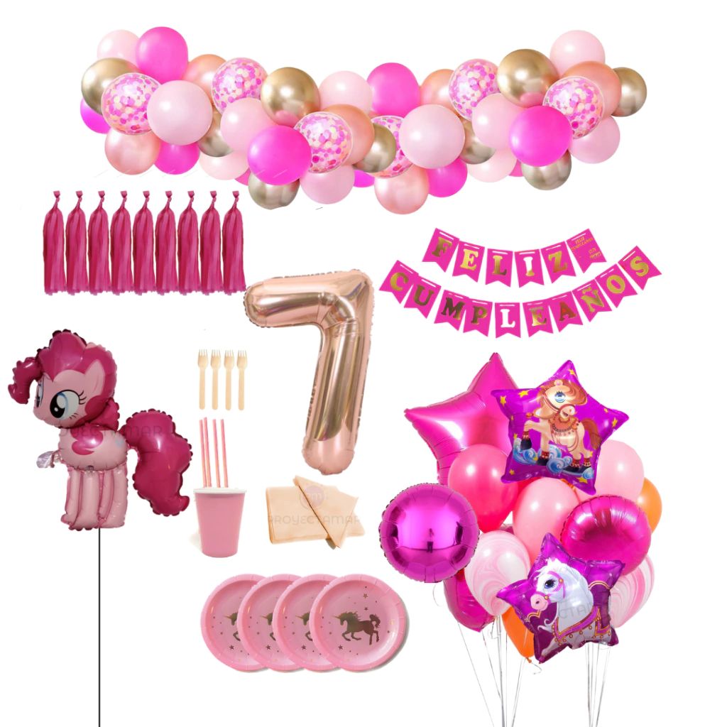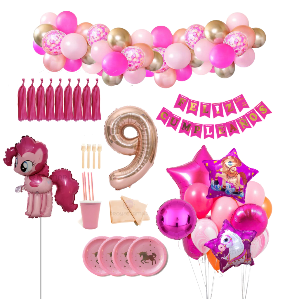 1 bouquet de 10 globos con tiras Cintas (4 figuras metalizadas y 6 latex de color)