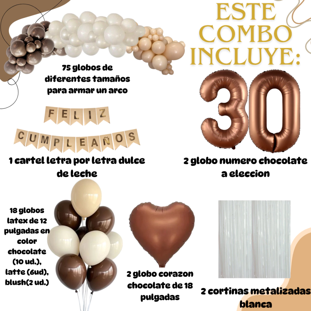 Dale un toque elegante y súper moderno a tu festejo con este Combo Chocolate, pensado para que armes una deco soñada sin complicarte.