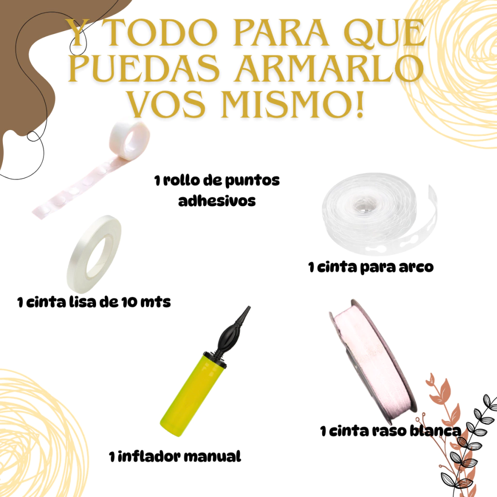 ✔️ 75 globos de diferentes tamaños para armar el arco (tonos chocolate, beige, latte y blanco perlado)
